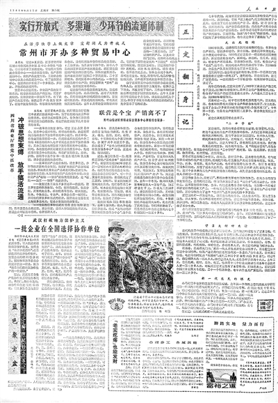 1984年6月17日,《人民日報》刊發(fā)通訊《正定翻身記》,肯定正定的探索,贊揚正定發(fā)展“半城郊型”經(jīng)濟“既為城市服務(wù),又掏城市腰包,在服務(wù)中發(fā)展自己”。(資料圖片)