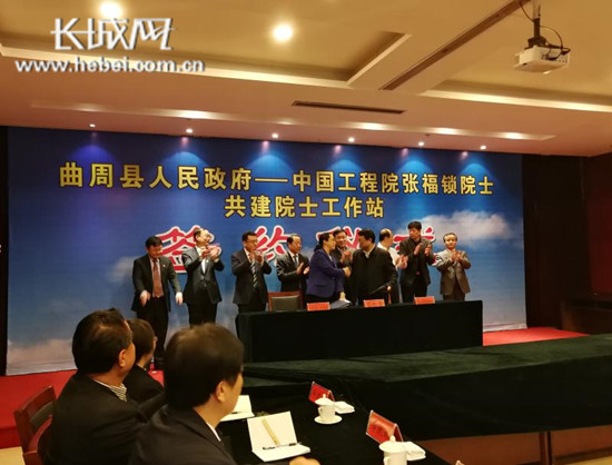 長城網邯鄲2月4日訊(記者鄧光韜張霖)2月4日,曲周縣人民政府與中國工程院院士張福鎖簽訂共建院士工作站協議,就推進曲周縣農業轉型、綠色發展,推動鄉村振興,建設國家級農業綠色發展樣板縣等方面內容達成一致。這是全國范圍內首個張福鎖院士工作站。
