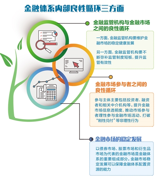 “形成金融體系內部良性循環(huán)至少有三方面的含義。”中國人民大學重陽金融研究院高級研究員董希淼表示,首先是金融監(jiān)管機構與金融市場之間的良性循環(huán)。一方面,金融監(jiān)管機構要維護金融市場的穩(wěn)定健康發(fā)展;另一方面,金融監(jiān)管機構要不斷彌補監(jiān)管制度短板,不斷提升監(jiān)管的有效性,推動金融市場參與者依法合規(guī)參與金融活動。