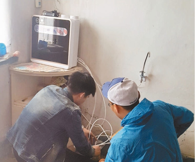 工作人員在內蒙古巴林右旗牧區現場調試納米凈水器。