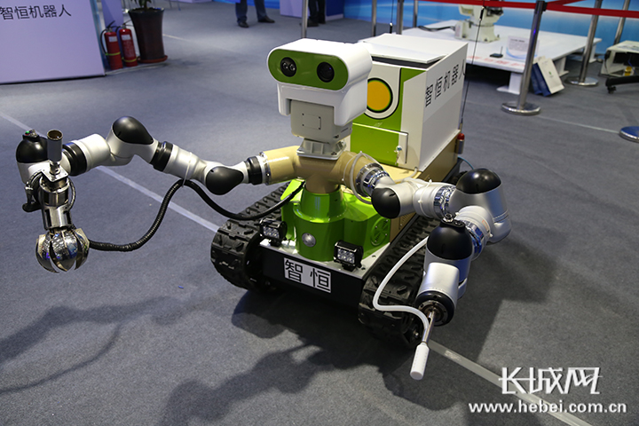 2018年“5·18”經洽會大智移云展上的環保應急偵測特種機器人。記者周亞彬攝