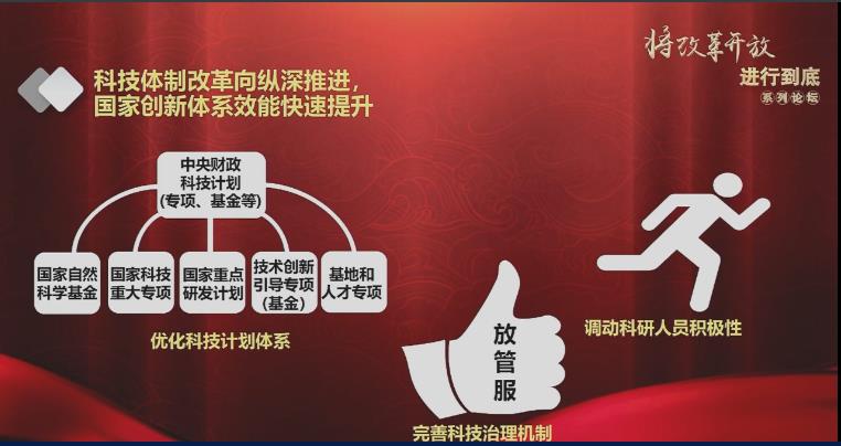 第三,科技體制改革向縱深推進(jìn),國(guó)家創(chuàng)新體系效能快速提升。我們始終圍繞促進(jìn)科技和經(jīng)濟(jì)社會(huì)結(jié)合這條主線,持續(xù)深化改革。特別是黨的十八大以來(lái),科技體制改革闖“深水區(qū)”、啃“硬骨頭”。優(yōu)化整合原有分散的科技計(jì)劃,建成了統(tǒng)一的國(guó)家科技管理平臺(tái)。堅(jiān)持自我革命,下放科研項(xiàng)目和資金管理權(quán),以政府“放管服”激發(fā)社會(huì)創(chuàng)新活力。實(shí)行創(chuàng)新調(diào)查制度,健全決策咨詢制度,推進(jìn)科技決策科學(xué)化、民主化。全面推進(jìn)國(guó)家創(chuàng)新體系建設(shè),研究型大學(xué)和國(guó)立科研機(jī)構(gòu)邁向世界一流水平,中科院在2017年湯森路透發(fā)布的“全球具創(chuàng)新力政府研究機(jī)構(gòu)25強(qiáng)”中排名第11位,113家中國(guó)企業(yè)進(jìn)入“2017全球創(chuàng)新1000強(qiáng)”榜單,數(shù)量居世界第三。